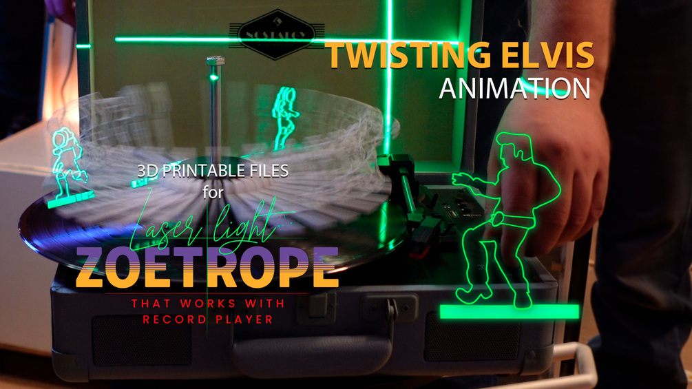 You'll get 2D vector files and 3D printable files for Zoetrope that works with Laser Light and Record Player